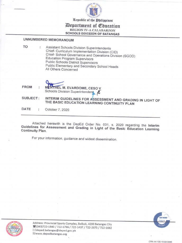 Interim Guidelines For Assessment And Grading In Light Of The Basic Education Learning Continuity Plan Pdf Educational Assessment Learning