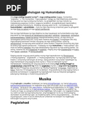 Ang Komunikasyon at Pananaliksik sa Wika at Kulturang Pilipino ay isang kurso o pag-aaral ukol sa pananaliksik sa kalikasan katangian pag-unlas gamit at paggamit ng Wikang FIlipino sa komunikatibo at kultural na paraan sa lipunang Pilipino. Tatlong 3 anyo ang pagsulat sa larangan ng Humanidades. Heto pa ang ilang dahilan kung bakit kailangan ang pananaliksik.