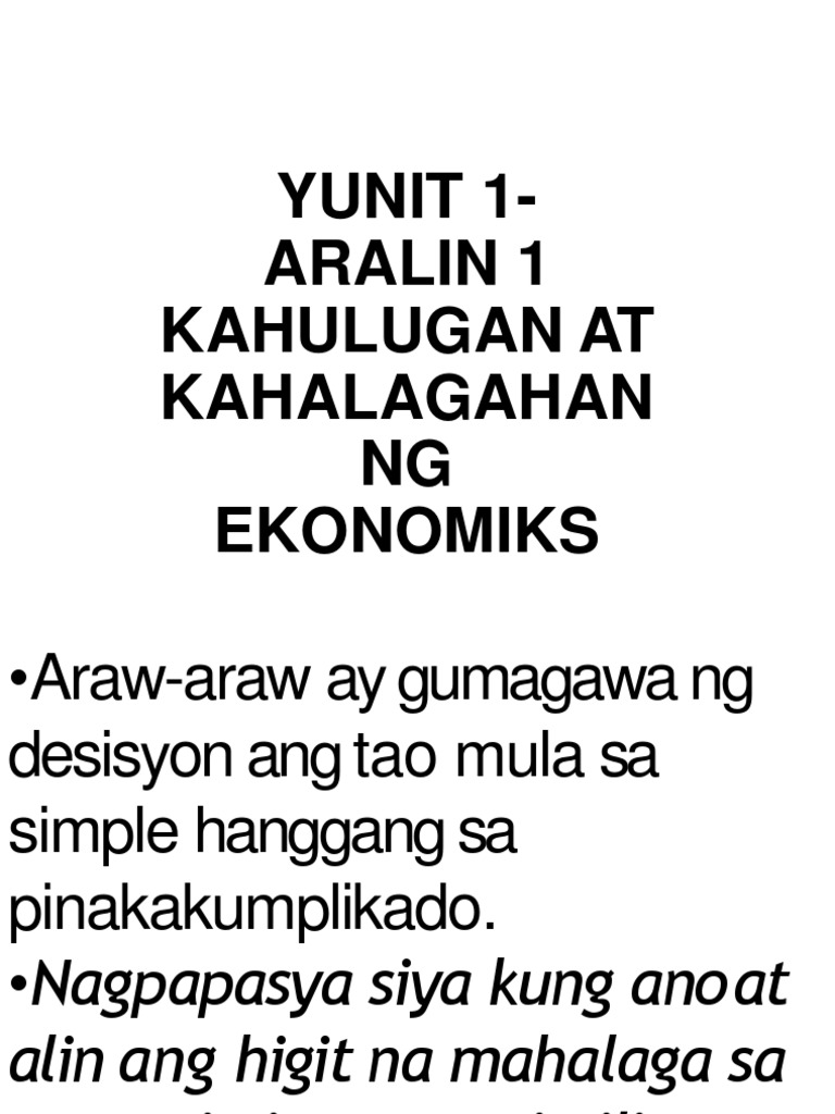 Aralin 1 Kahulugan At Kahalagahan Ng Ekonomiks Pdf